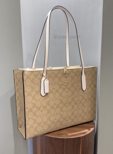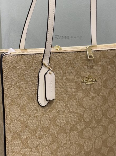 حقيبة كوتش نينا لون بيج مع ابيض حجم قاعدة 34 سم Coach Nina Tote Bag