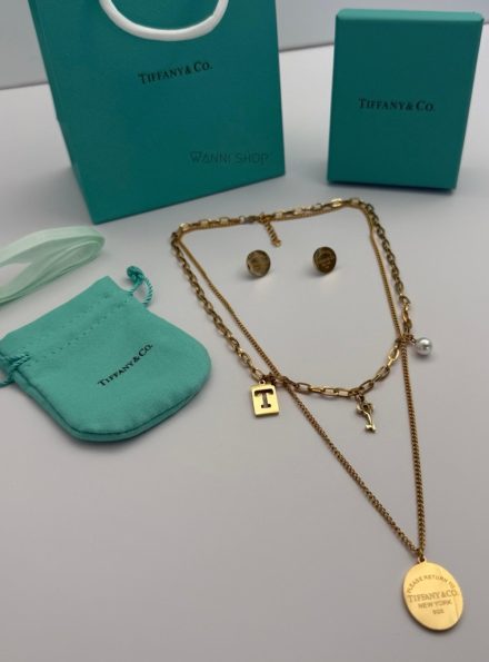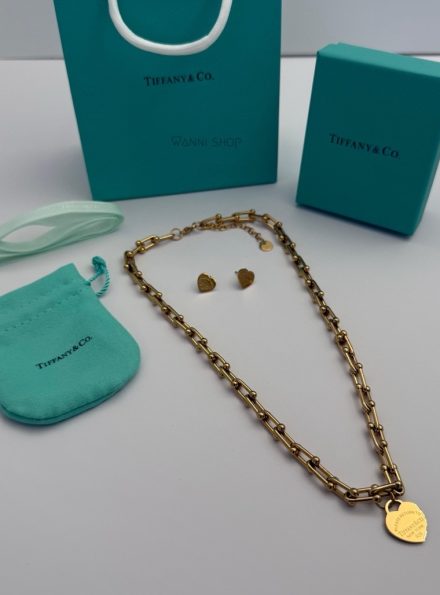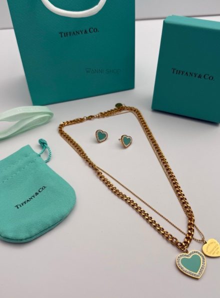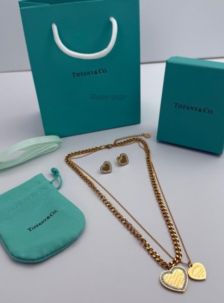 طقم تيفاني حلق مع سنسال بكج كامل ستانلس ستيل Tiffany & Co. 1