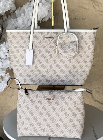 حقيبة جيس ثلاث قطع لون بيج مع كاميل حجم قاعدة 32 سم Guess Power Play