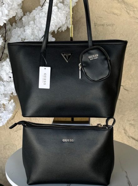 حقيبة جيس ثلاث قطع لون اسود سادة حجم قاعدة 32 سم Guess Power Play