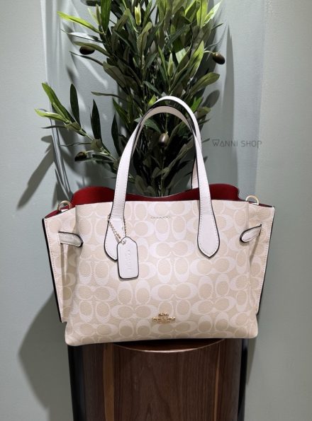 حقيبة كوتش لون ابيض مع اوف وايت حجم قاعدة 31 سم شامل العلبة Coach Carryall Hanna