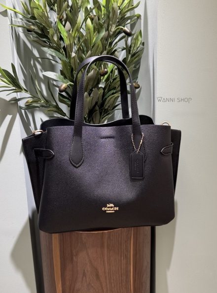 حقيبة كوتش لون اسود سادة جلد ناعم حجم قاعدة 31 سم شامل العلبة Coach Carryall Hanna