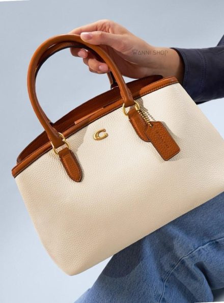 حقيبة كوتش لون اوف وايت مع كاميل حجم قاعدة ٢٨ سم Coach Carryall Legacy