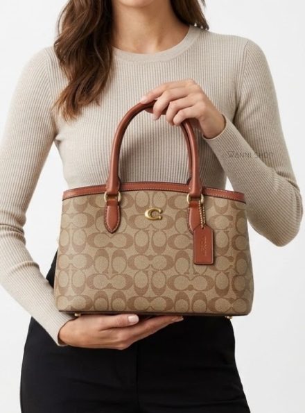 حقيبة كوتش لون بيج مع كاميل حجم قاعدة ٢٨ سم Coach Carryall Legacy