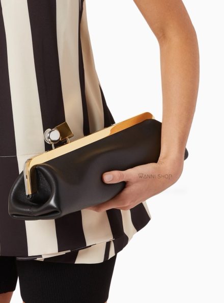 حقيبة كلاتش جاكيموس لون اسود سادة ماستر كواليتي | دوبل فيس جهة فضي و جهة ذهبي مع يد طويلة شامل العلبة Jacquemus La Pochette Salon