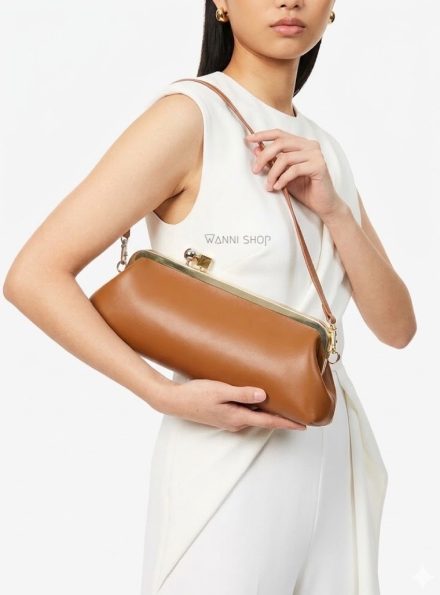 حقيبة كلاتش جاكيموس لون كاميل ماستر كواليتي | دوبل فيس جهة فضي و جهة ذهبي مع يد طويلة شامل العلبة Jacquemus La Pochette Salon