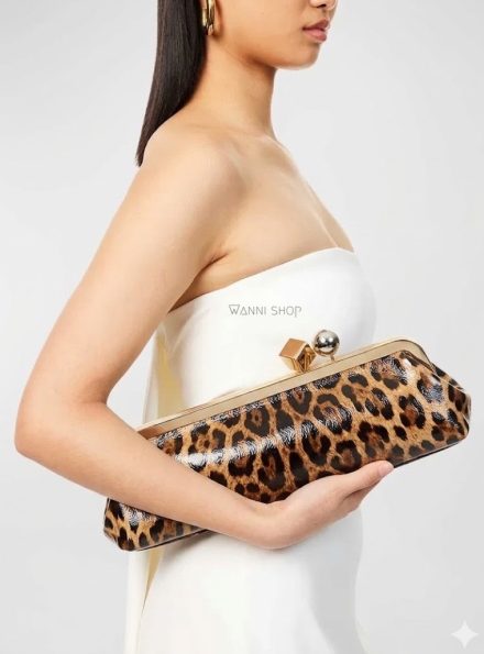 حقيبة كلاتش جاكيموس لون نمري ماستر كواليتي | دوبل فيس جهة فضي و جهة ذهبي مع يد طويلة شامل العلبة Jacquemus La Pochette Salon