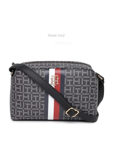 حقيبة تومي مونوجرام لون تشاركول مائل للسكني موشح حجم قاعدة 25 سم Tommy Hilfiger | TH Monogram Rowan