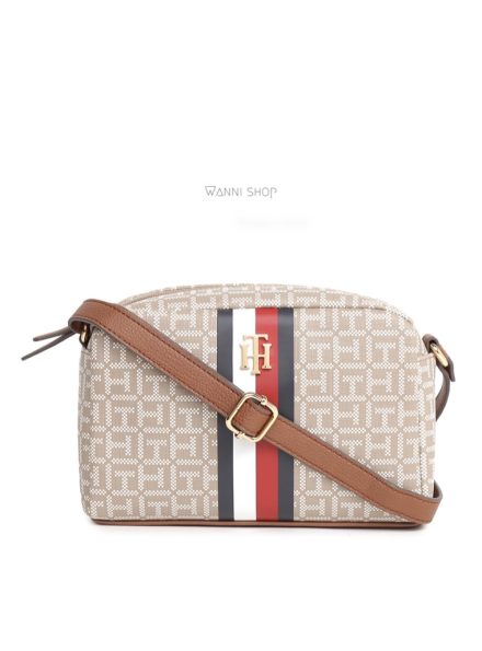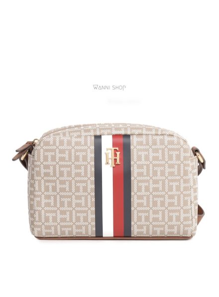 حقيبة تومي مونوجرام لون بيج موشح حجم قاعدة 25 سم Tommy Hilfiger | TH Monogram Rowan
