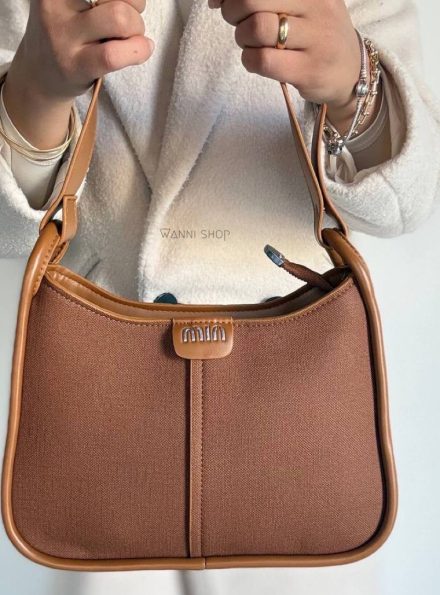 حقيبة ذات جلد مميز لون كاميل شبيه الماركة حجم قاعدة 28 سم Min Min Shoulder Bag
