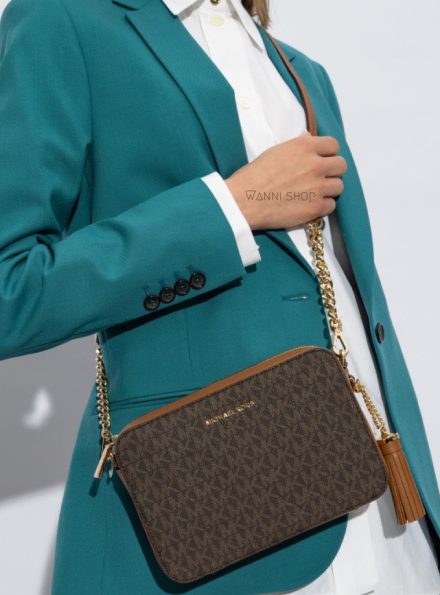 حقيبة مايكل كورس لون بني مع كاميل حجم قاعدة 25 سم شامل العلبة Michael Kors | MK Jet Set Crossbody