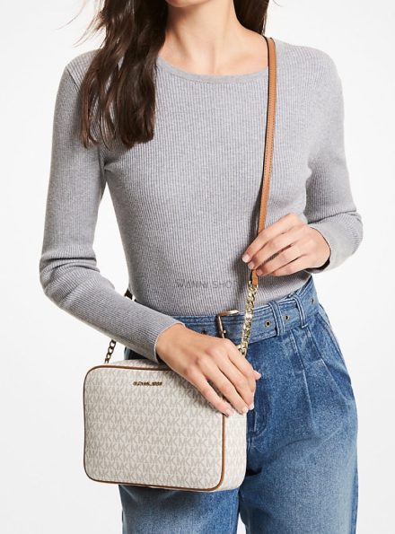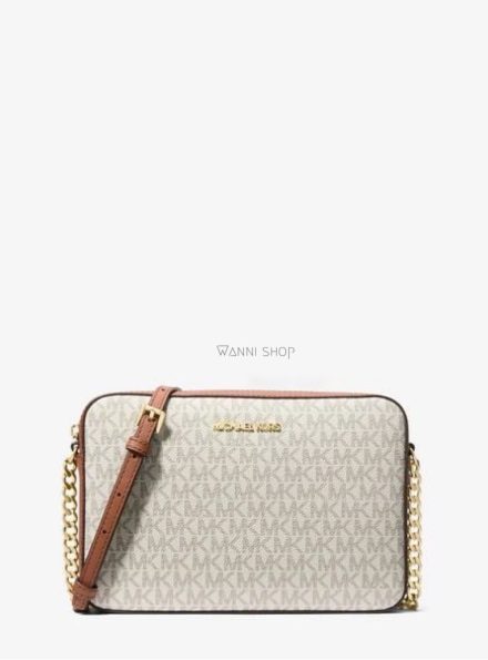 حقيبة مايكل كورس لون اوف وايت مع كاميل حجم قاعدة 25 سم شامل العلبة Michael Kors | MK Jet Set Crossbody