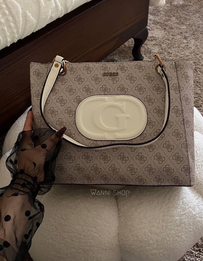 جيس حجم كبير مقاس قاعدة 34 سم لون بيج مع ابيض Guess Eco Mietta