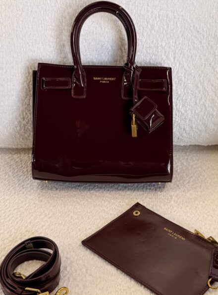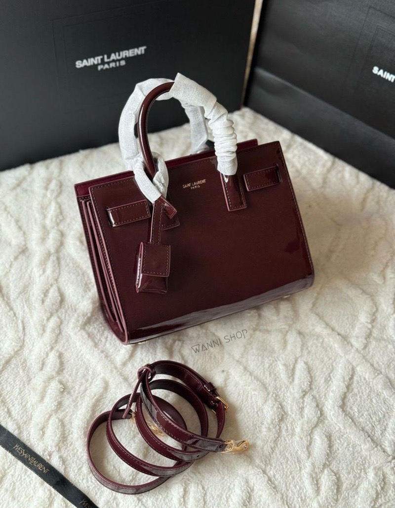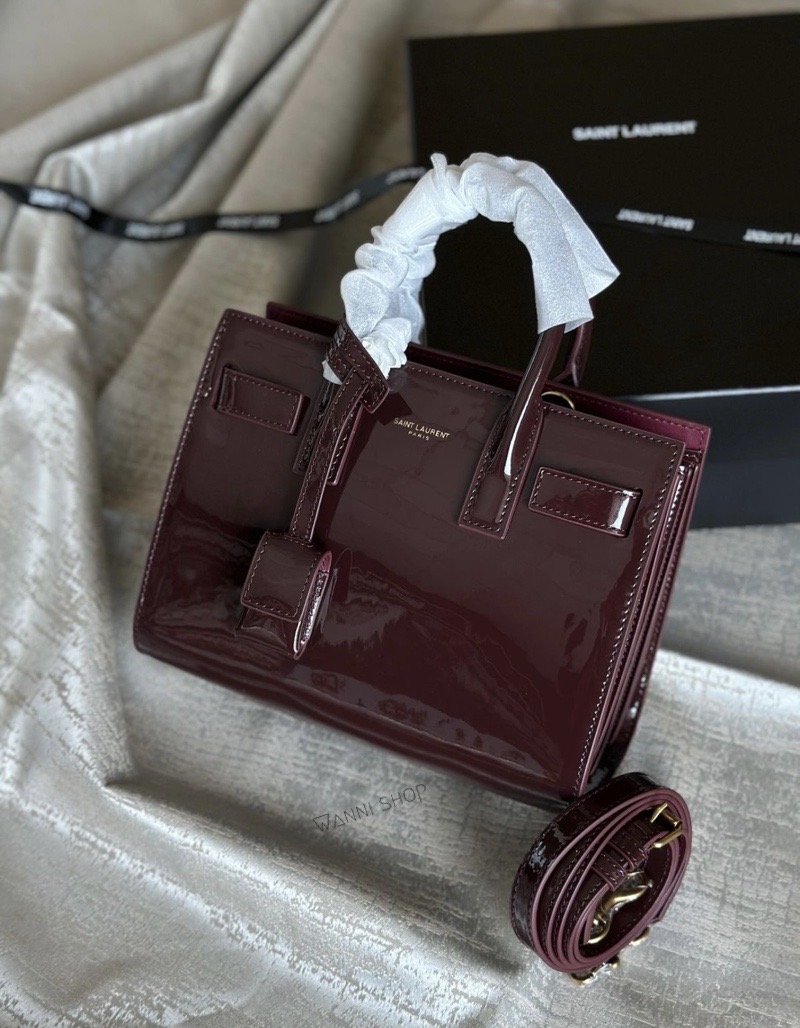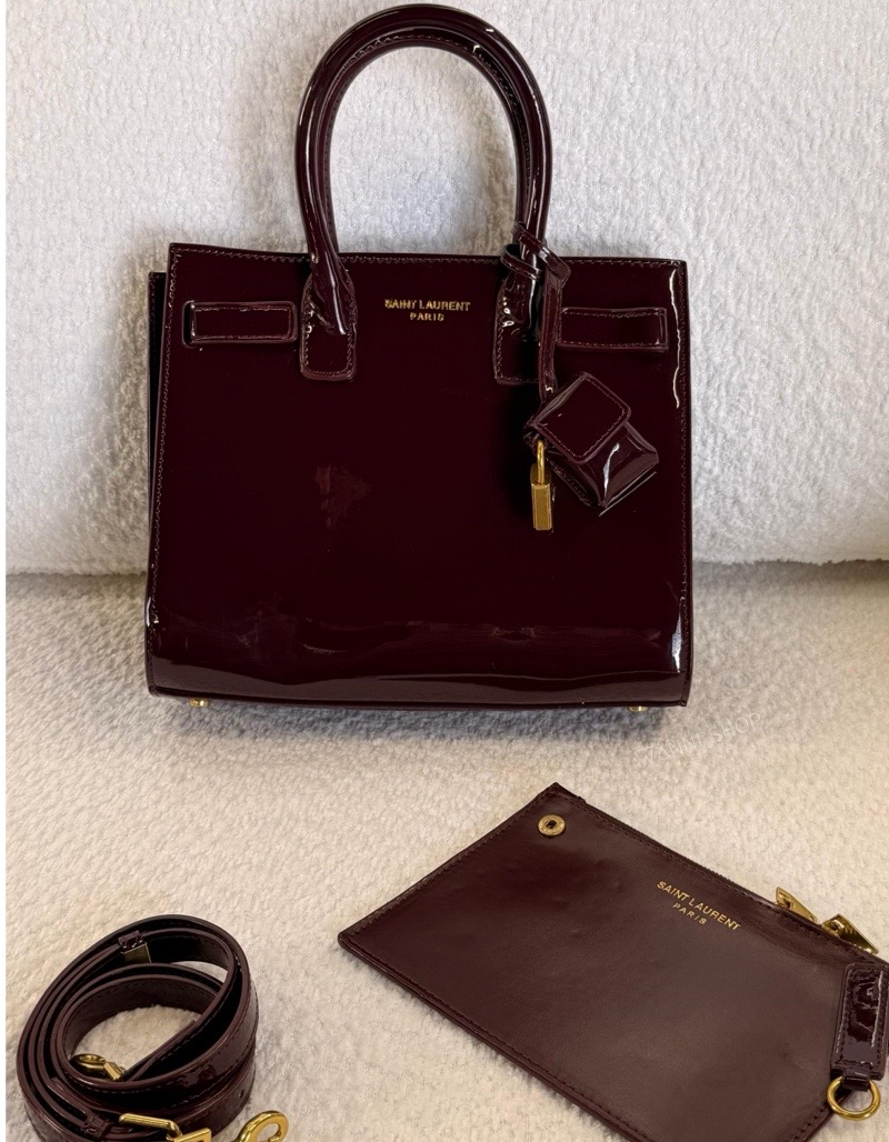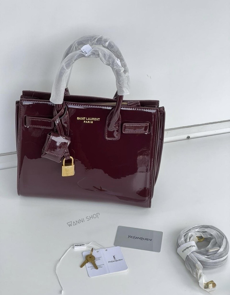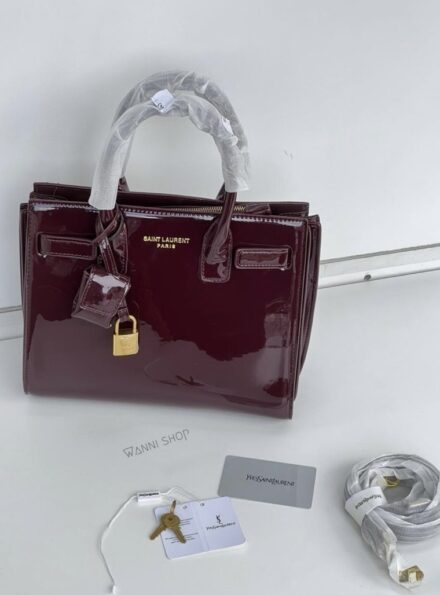 حقيبة ايفسانلوران كواليتي عالي لون خمري / برغندي جلد لميع حجم قاعدة 30 سم YvesSaintLaurent | YSL Sac De Jour