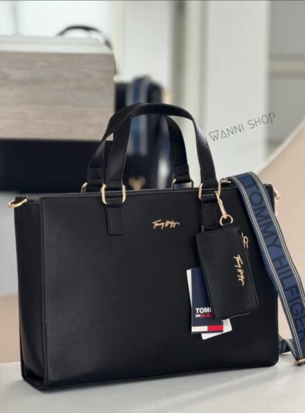 حقيبة تومي كروس لون اسود شامل العلبة Tommy Hilfiger Jacguard Camera Bag