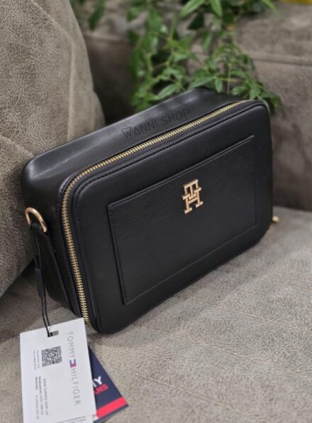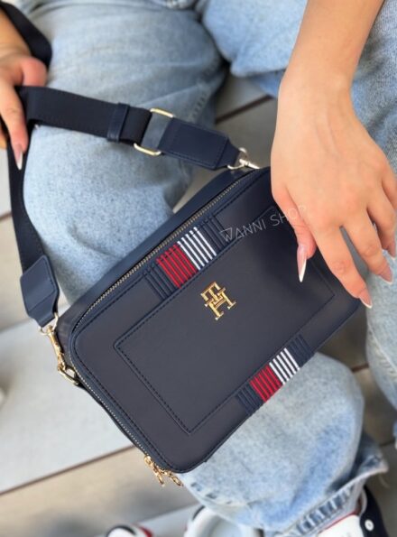 حقيبة تومي كروس لون اوف وايت مع كحلي شامل العلبة Tommy Hilfiger Jacguard Camera Bag