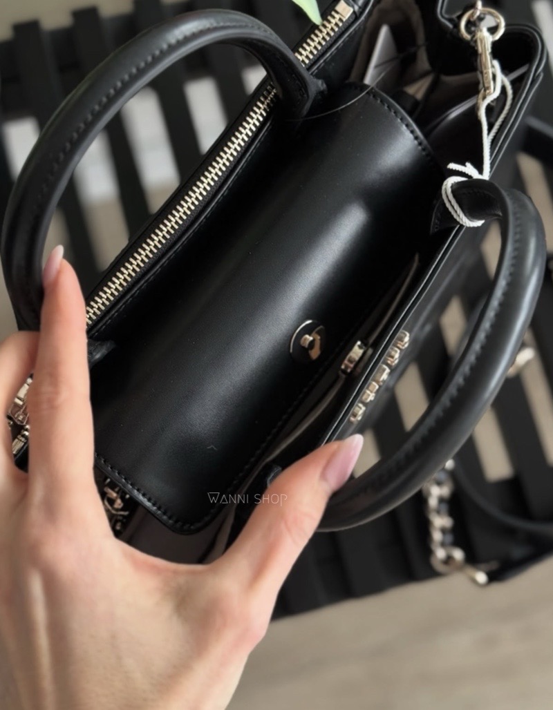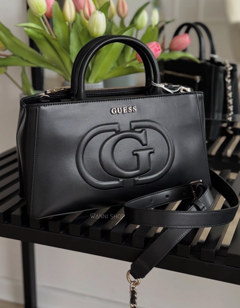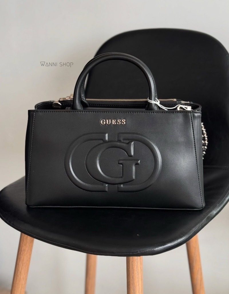 حقيبة جيس حجم وسط مقاس قاعدة 30 سم لون اسود سادة Guess Eco Mietta Medium