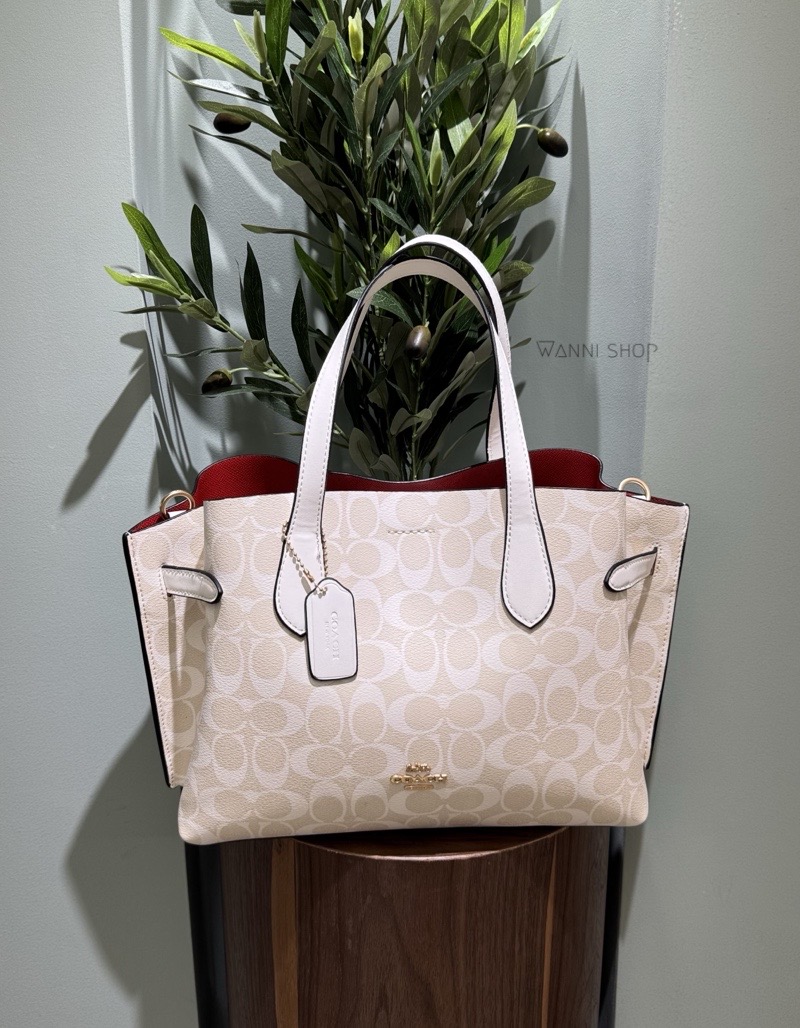 حقيبة كوتش لون ابيض مع اوف وايت حجم قاعدة 31 سم شامل العلبة Coach Carryall Hanna