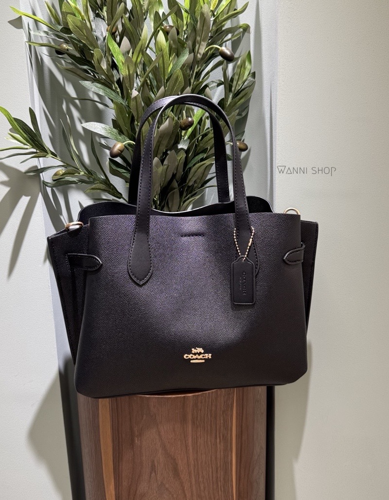 حقيبة كوتش لون اسود سادة جلد ناعم حجم قاعدة 31 سم شامل العلبة Coach Carryall Hanna