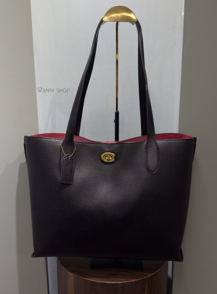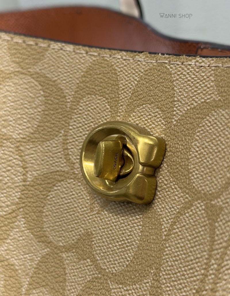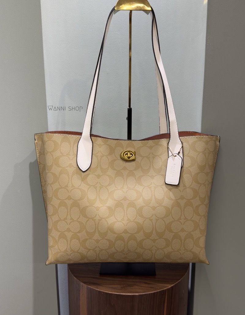 حقيبة كوتش لون بيج فاتح مع ابيض حجم كبير قياس قاعدة 34 سم Coach Willow Tote Bag