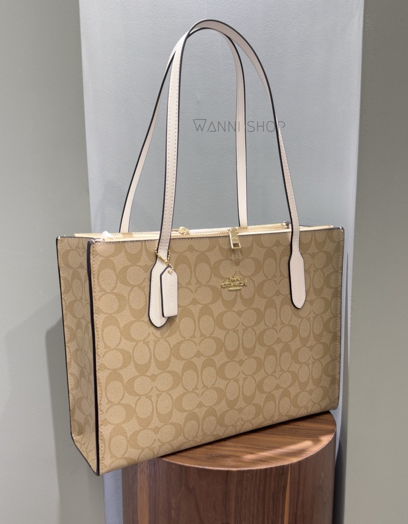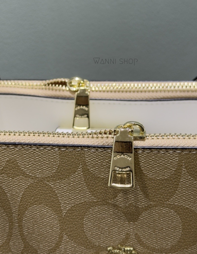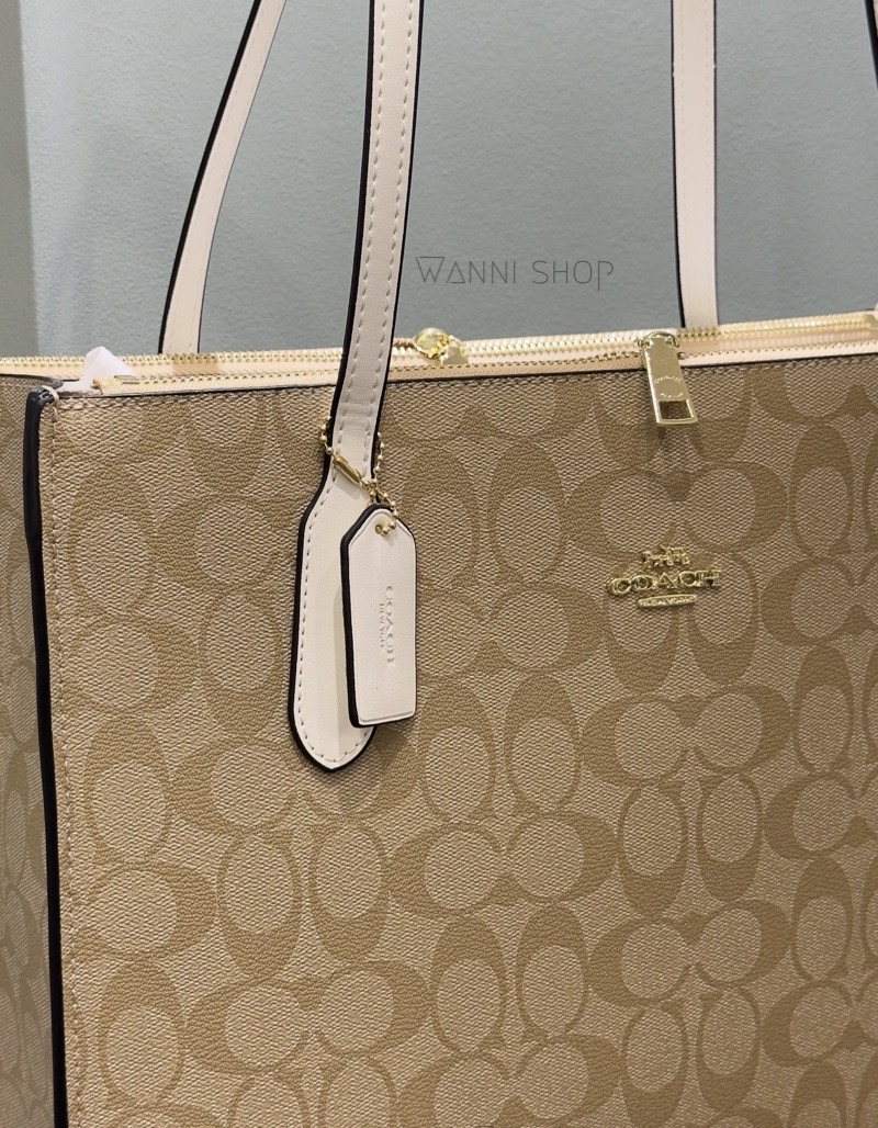 حقيبة كوتش نينا لون بيج مع ابيض حجم قاعدة 34 سم Coach Nina Tote Bag