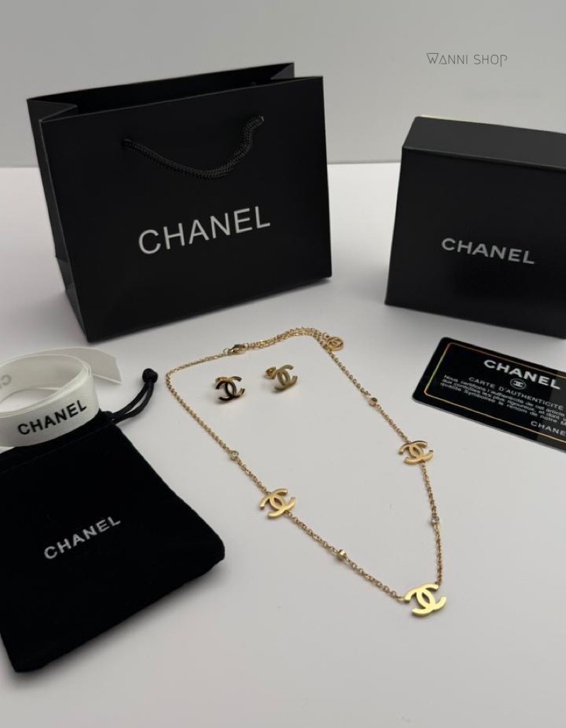 طقم شانيل حلق مع سنسال بكج كامل ستانلس ستيل Chanel Set 7