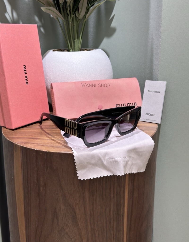 نظارة ميو ميو لون اسود مع ذهبي شامل العلبة الاصلية فل بكج Miu Miu Mu Sunglasses